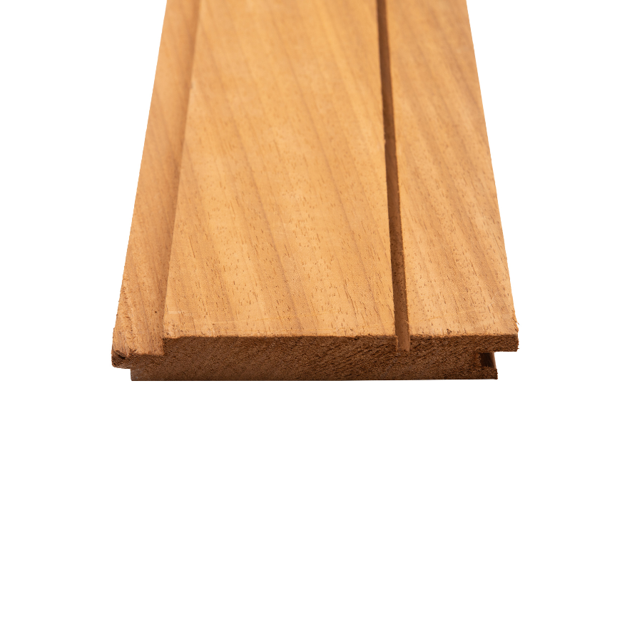 Ayous Vario Typ 4 ist ein hochwertiges Fassadenprofil für vertikale Anwendungen mit einer modernen, ruhigen Linienführung. Es eignet sich ideal für Fassaden, Überdachungen oder hochwertige Zäune und lässt sich hervorragend mit den anderen Vario-Typen kombinieren, um ein lebendiges Barcode-Fassadenbild zu erzeugen. Das Profil wird aus thermisch modifiziertem Ayous gefertigt und bietet dadurch eine hohe Dauerhaftigkeit sowie Maßhaltigkeit, ganz ohne chemische Zusätze. Mit seinen Abmessungen von 22 × 133 mm ist es auf Anfrage in verschiedenen Längen erhältlich und überzeugt durch eine warme, natürliche Optik, die unbehandelt gleichmäßig vergraut oder farblich ausgeführt werden kann.