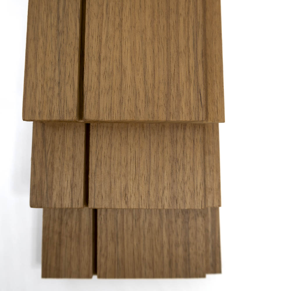 Diese Premium-Fassadenverkleidung ist durch das Vario Typ 4 R3-Profil gekennzeichnet, das eine asymmetrische Nut an der Oberseite des Paneels aufweist. Werden zwei Vario-4-Paneele nebeneinander montiert, entsteht der optische Eindruck einer breiteren und einer schmaleren Diele. Dadurch ergibt sich ein lebendiges, abwechslungsreiches Fassadenbild mit rhythmischer Tiefe.