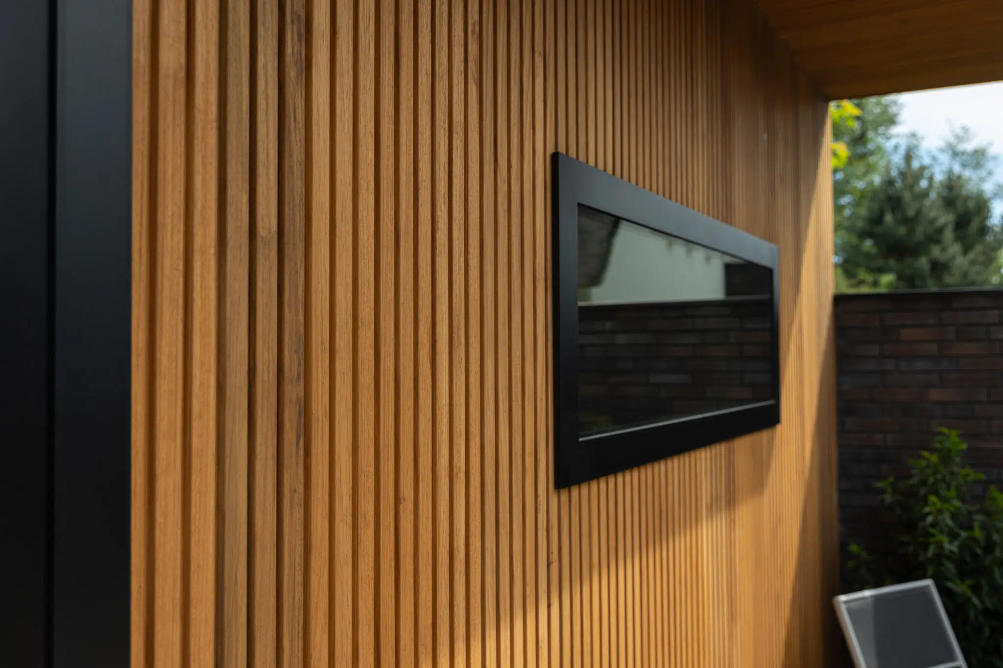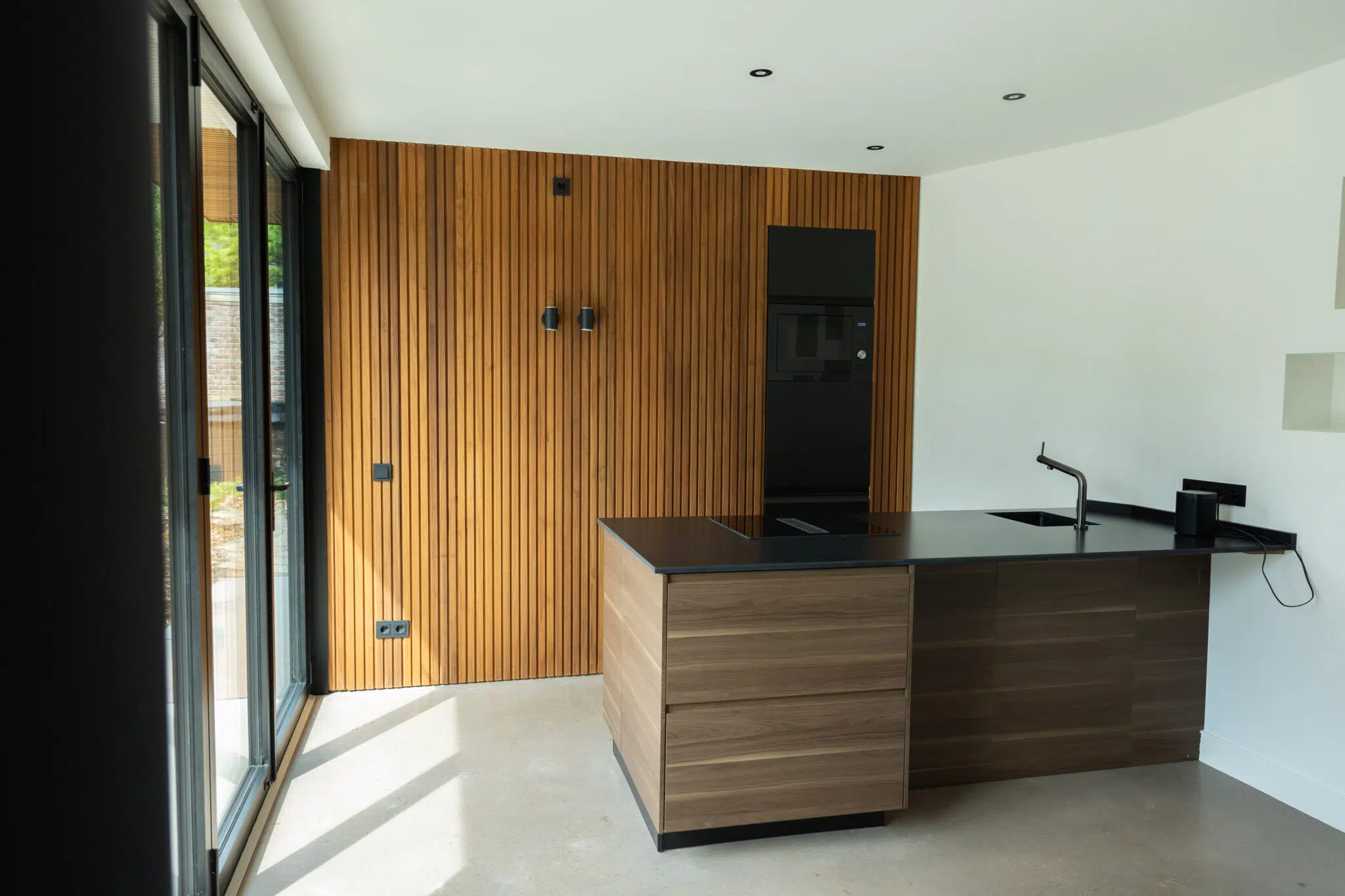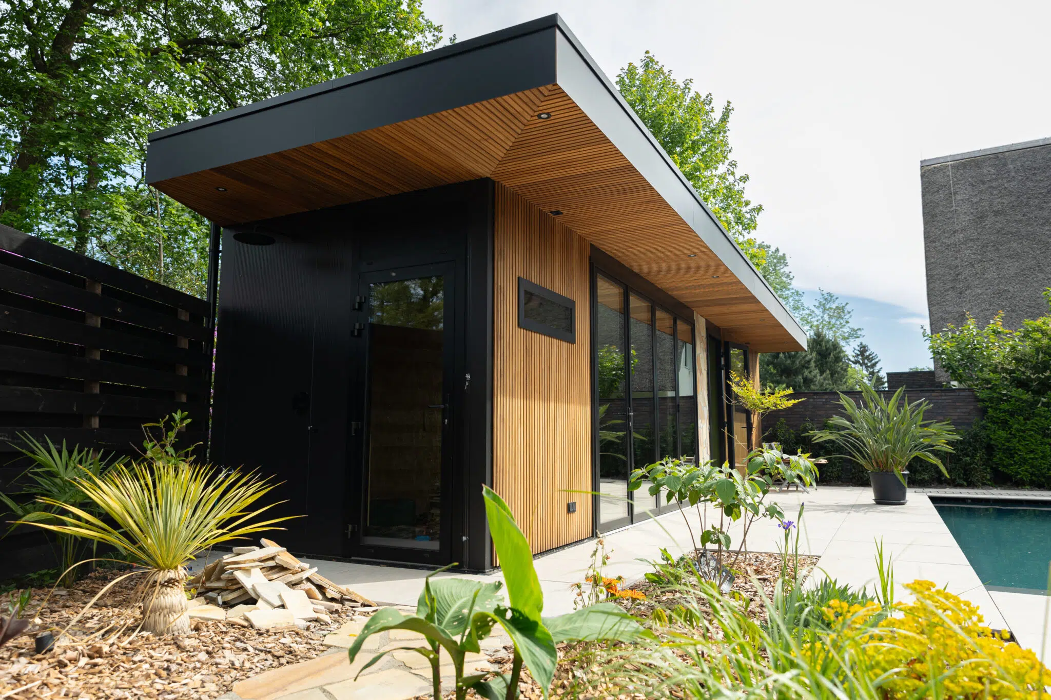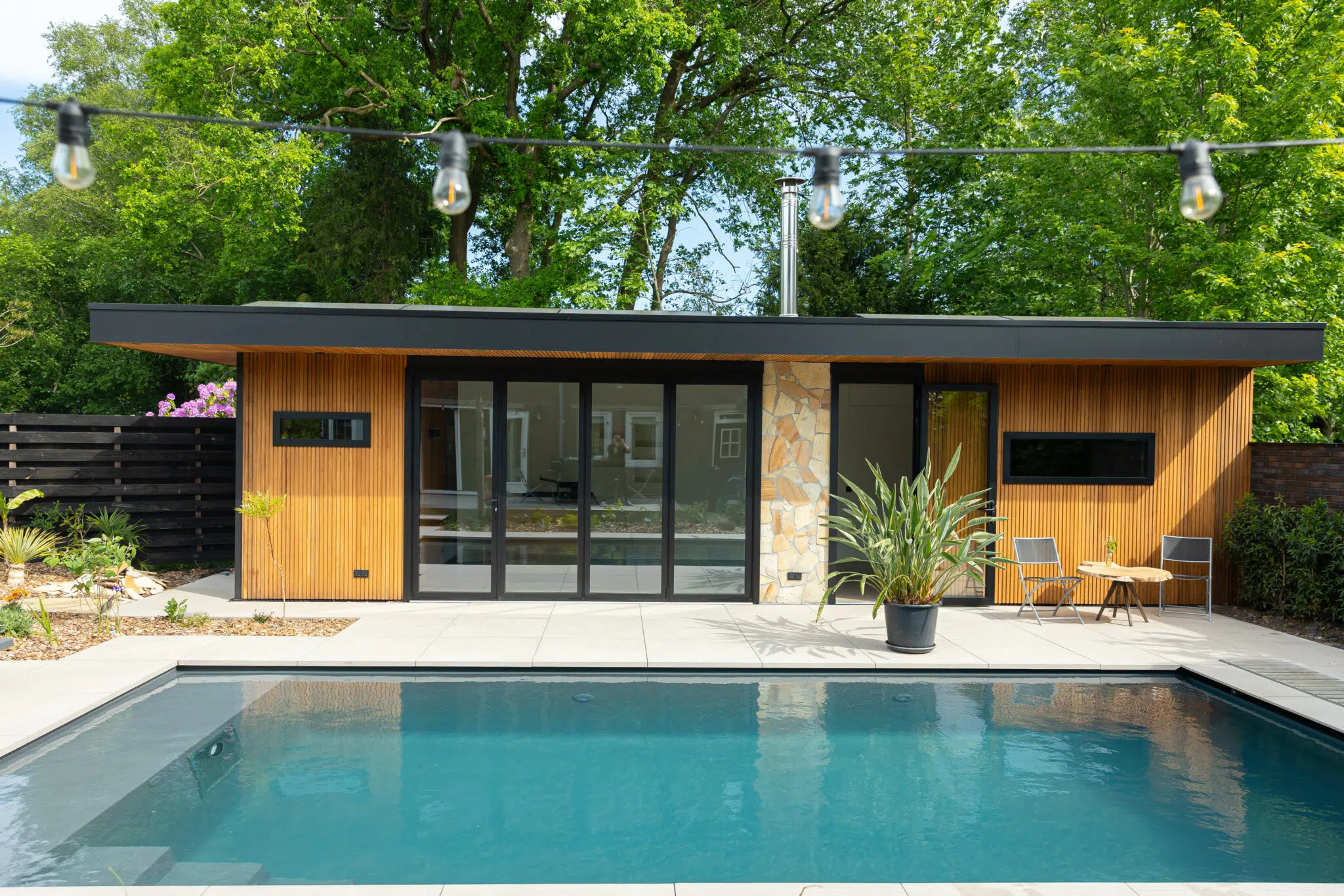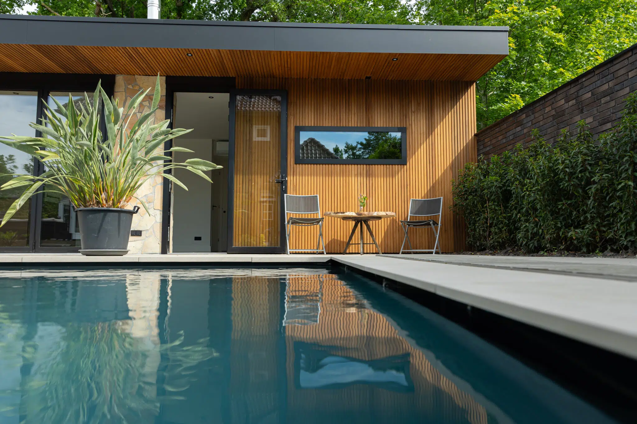 Für dieses luxuriöse Poolhaus in Haren wurde Thermo-Ayous-Holz im Triple-Rhombus-Profil gewählt. Durch das Triple-Rhombus-Profil erhält die Fassade zusätzliche Tiefe, was perfekt zur hochwertigen Ausstrahlung des Poolhauses passt.