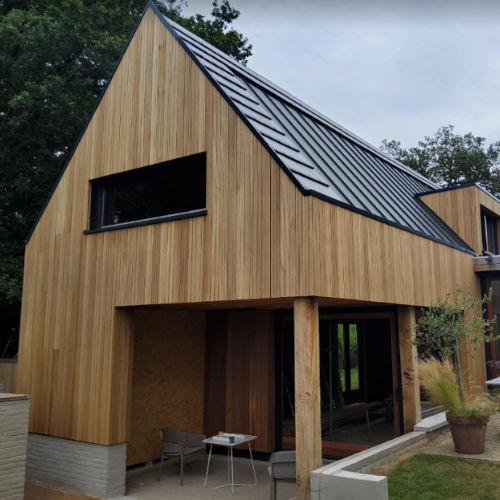 De studie commerciële economie komt Boon goed van pas bij de marketing en e-commerce. “Zo ben ik ook in het hout beland. Na mijn studie en diverse andere banen ben ik bij Bouwcenter Eppinga in Drachten begonnen om daar het e-commerce deel te ontwikkelen. Zeven jaar werkte ik daar. Hout was daar één van de materialen, maar had al snel mijn voorkeur. Toen Eppinga werd overgenomen door een ander bedrijf ben ik voor mezelf begonnen en heb me gespecialiseerd in houten gevels. Dit trok me het meest. Vanwege mijn voorliefde voor hout, maar ook omdat het wat grotere projecten zijn. Je kunt dan rendabel draaien met niet al te veel opdrachtgevers die je een hoog serviceniveau kunt bieden. We merken dat onze klanten het specialisme waarderen.”