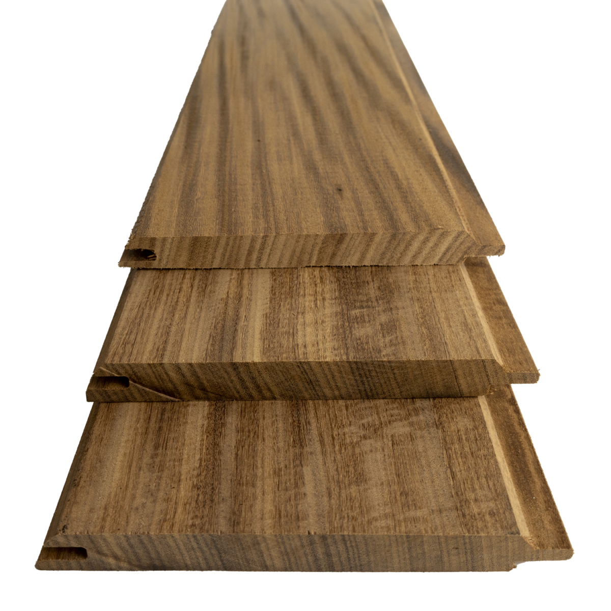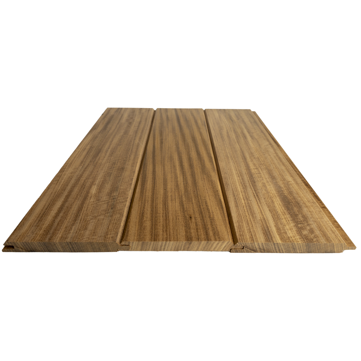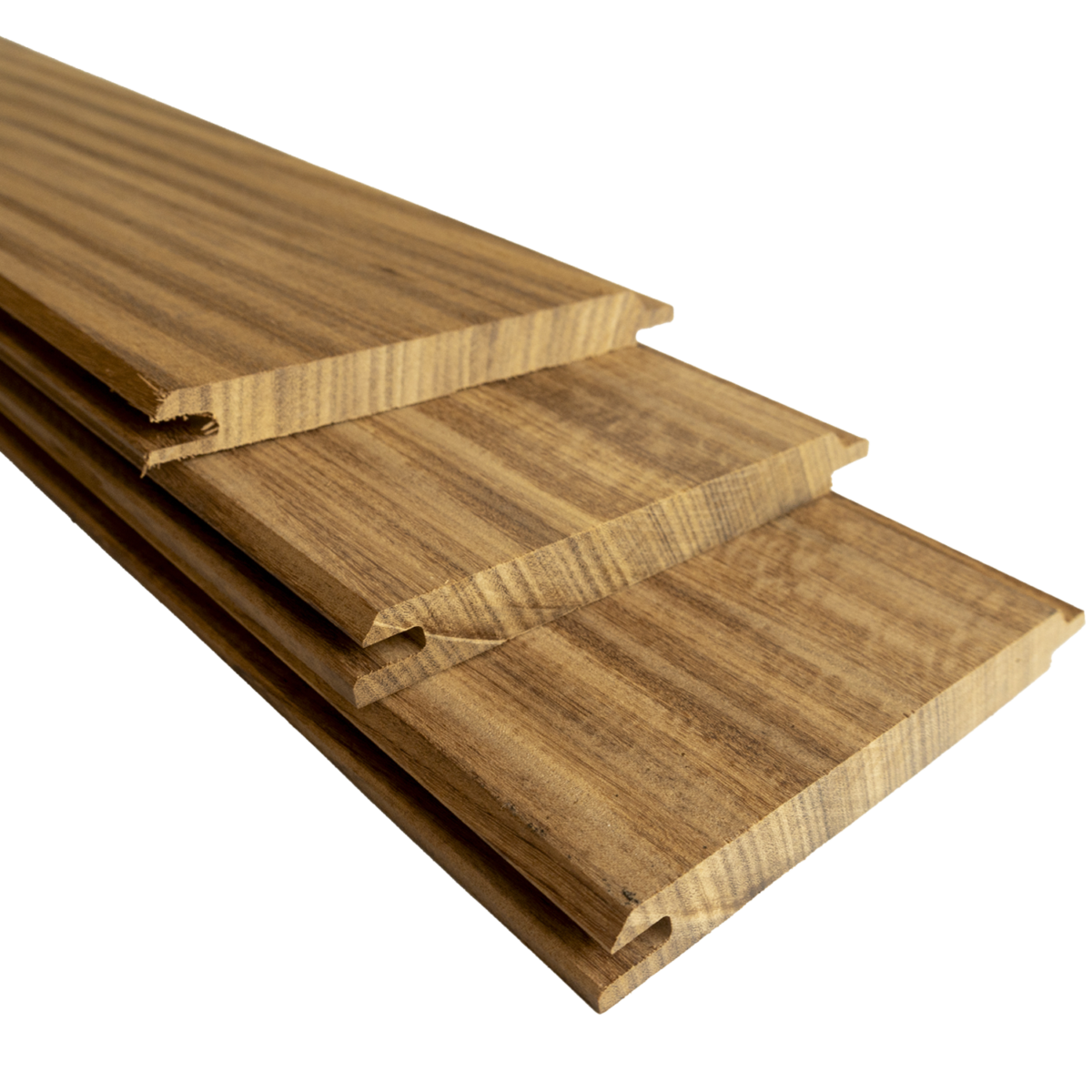 Afrormosia timber has a natural durability class of 1+, resulting in a service life of more than 25 years. This stylish golden-brown cladding is produced in the Planchet profile, also known as the Puntgroef profile. Thanks to the smart tongue-and-groove system on both the long and short sides, the boards can be installed quickly and precisely, with minimal cutting loss. The result is a tight and seamless finish.