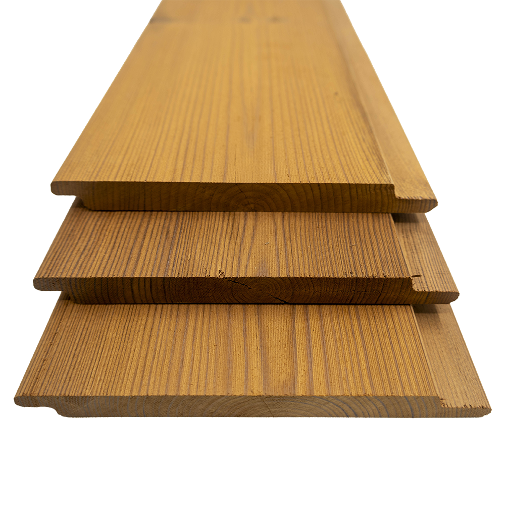 This premium cladding features a Channelsiding profile with a subtle bevel that creates depth while ensuring effective ventilation and water drainage. The brushed surface highlights the natural grain, giving the wood a refined and textured appearance.